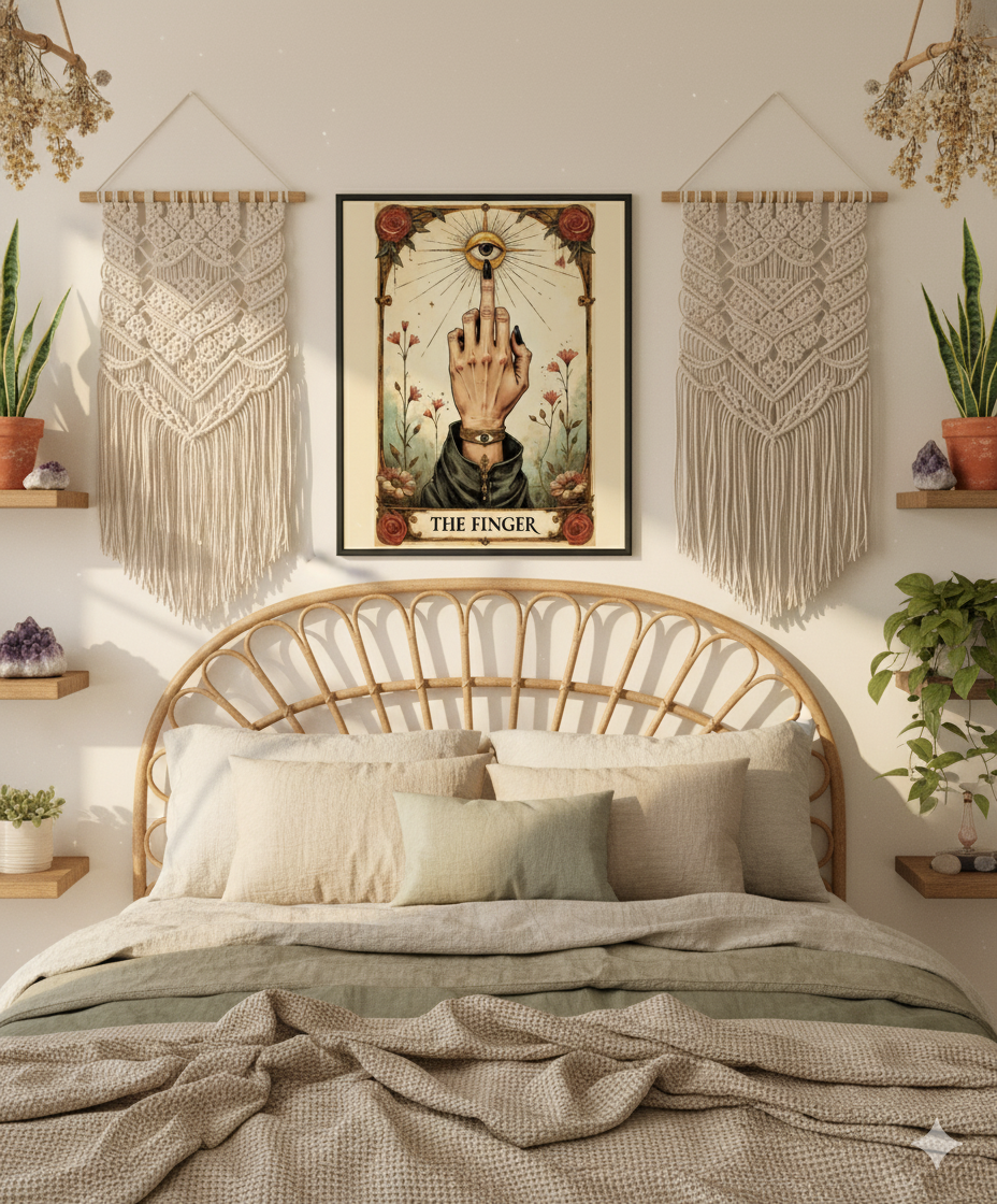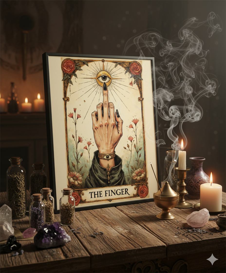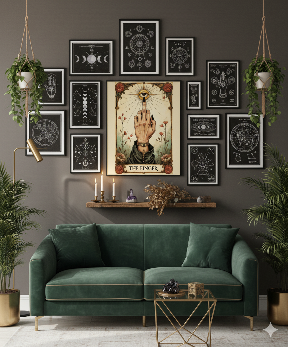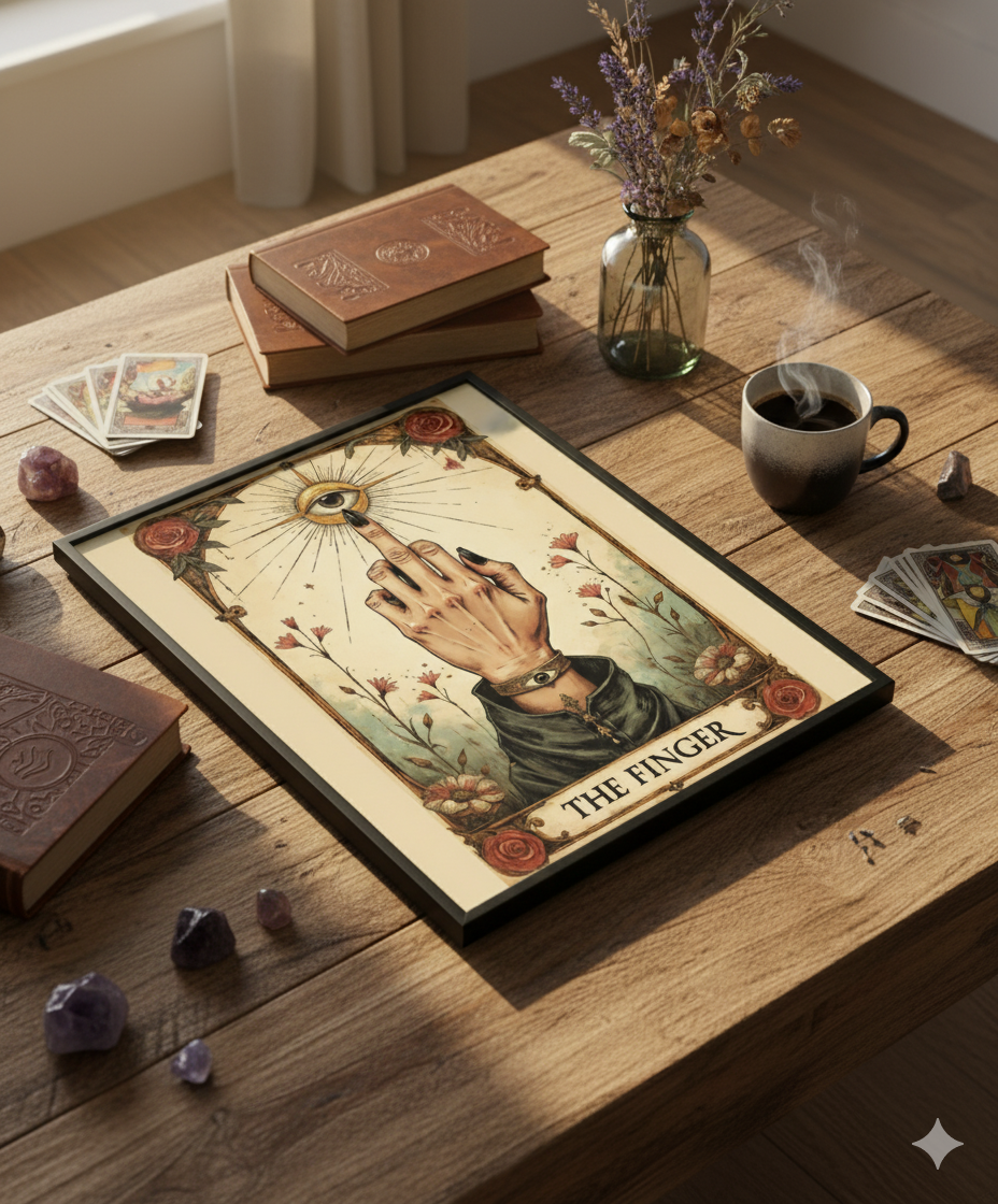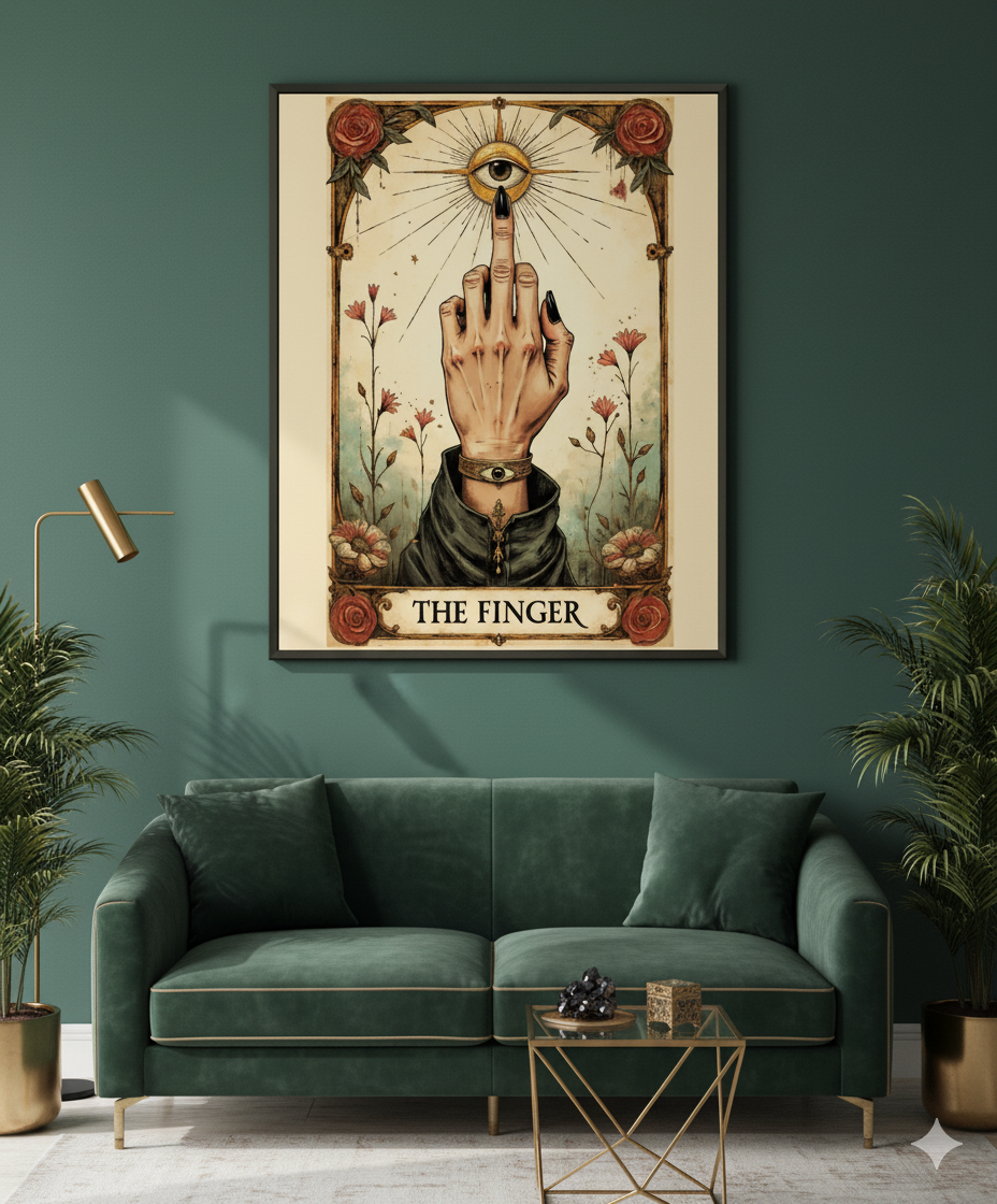 Transform your space with ‘The Finger Tarot Card Wall Art,’ a stunning piece of witchy home decor that captures the mystique of tarot in a beautifully framed design. This eye-catching poster not only serves as a captivating focal point for your living room or workspace but also invites deeper reflections into the mystical world.
