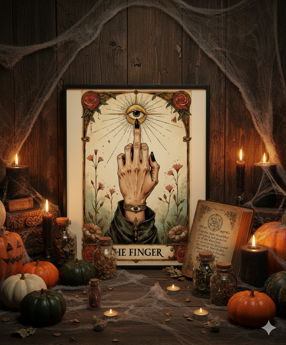 Be the first to review “The Finger Tarot Card Wall Art – Framed Poster, Witchy Home Decor, Aluminium Frame”